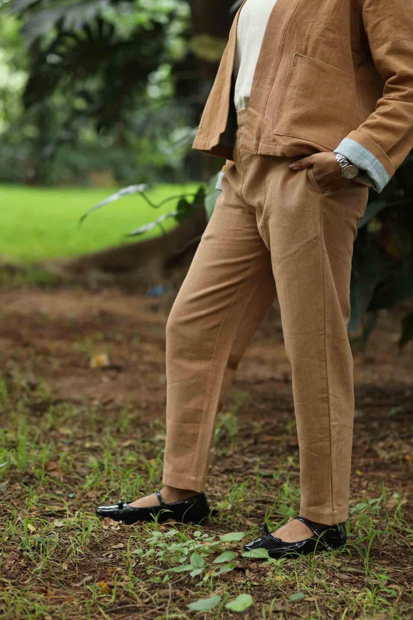 Handwoven cotton cropped pants that taper ever so slightly towards the ends. Perfect for weekend strolls or as a weekday statement piece.